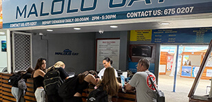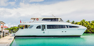 Running three times daily between Denarau, Musket Cove, Plantation Island, and Lomani Island Resorts.